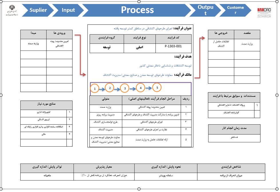 - شرح خدمت: تهیه اطلاعات اکتشافی و اجرای طرحهای اکتشافی در مناطق کمتر توسعه یافته، به منظور کشف ذخایر اکتشافی جدید کشور و فراهم نمودن بستر مناسب جهت تقویت بخش معدن و صنایع معدنی.